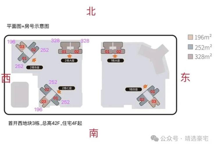 总楼层:1A栋41层;2A、2B、2C栋42层,1B栋59层,1C栋自持租赁54层,幼儿园4层。
