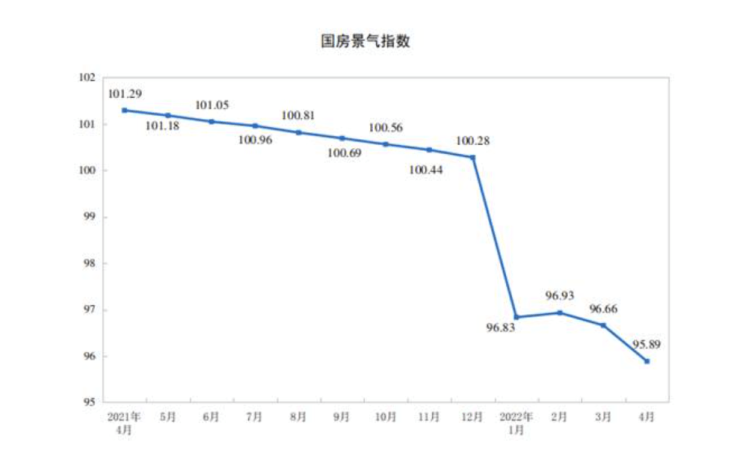 4月份,房地产开发景气指数(简称“国房景气指数”)为95.89。
