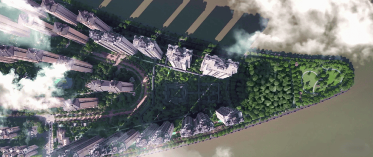 ◎ 规划:9栋建筑沿江岸线南北排布,环抱中央园林,形如“九星捧月”,风水格局上佳。