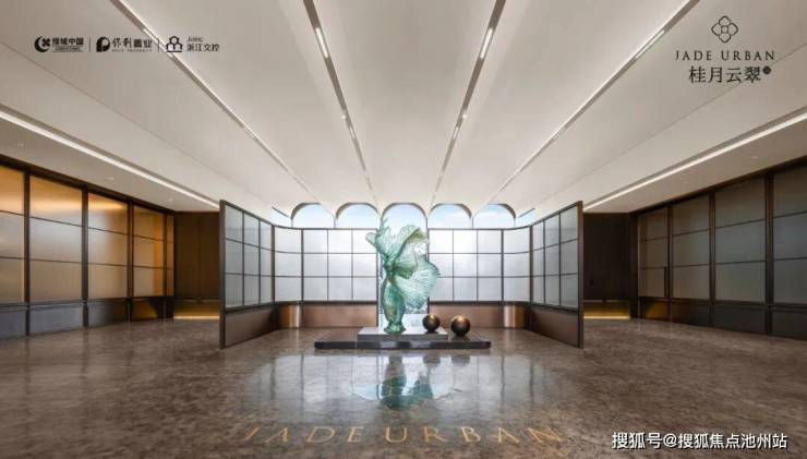 约50米宽幅恢弘大门庭、环岛式酒店落客区、朗阔挑高大堂,塑造层层叠翠归家仪式,辉映江南的封面,尽显翡翠的昭示感。