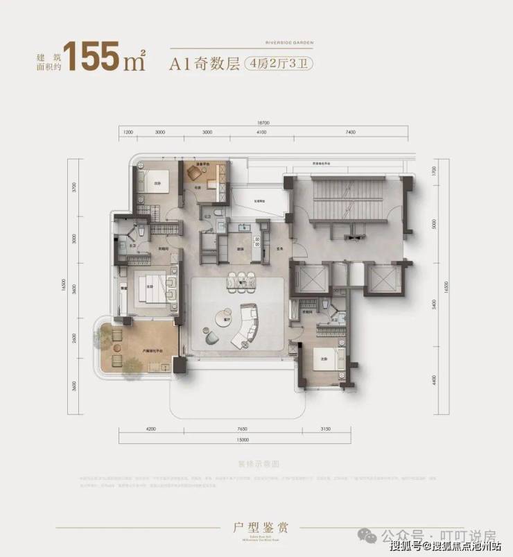 本次为项目首开,首开楼幢为1号楼和6号楼两幢,一共76套。共有2个户型,一个是155㎡,另外一个则是175㎡。