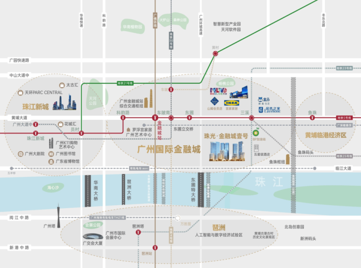 金融城投号资产御鉴非凡,承载着广州金融城的未来发展脉络 ,规划面积约8平方公里,位于天河最后一块临江热土,成为广州财富巨流的引领者。规划为金融科技示范区,融合人工智能与数字经济产业,与周边区域共同构成黄金三角,成为广州经济发展的引领者。