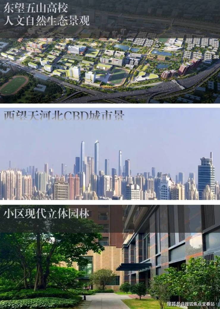 项目所处于的东莞庄路,地势较高,形成半山景观,东望五山高校人文自然生态景观,西望天河北CBD城市景观,高层视野开阔,低层可望小区现代立体园林;