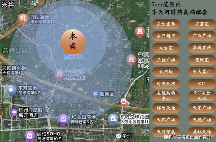 项目周边生活氛围浓厚,五百米范围内酒楼超市影院齐全。配套学校、医院、公园应有仅有。且项目瞬间抵达天河中心商圈,开启零距离的购物生活。旺中带静,超高的居住舒适度。 3km范围内太古汇、天环、K11、IGC等超 10家顶流商场及星级酒店,5大人文地标林立。