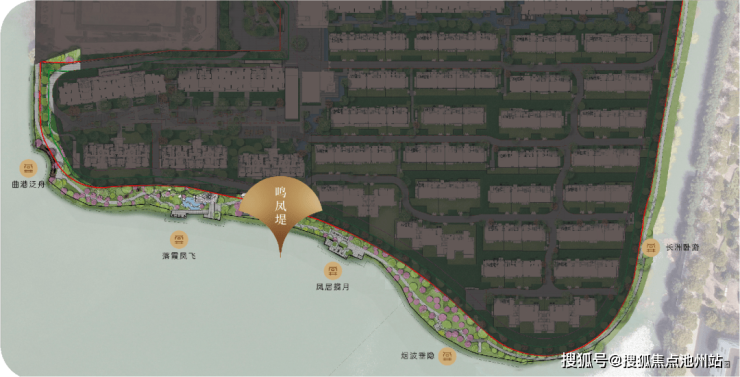 更厉害的是,项目还利用这一天然优势,额外打造了约450米长的鸣凤堤景观带,把苏州人亲水、乐水的生活方式“搬到”了家门口。