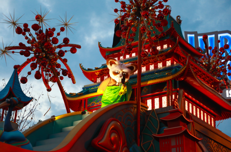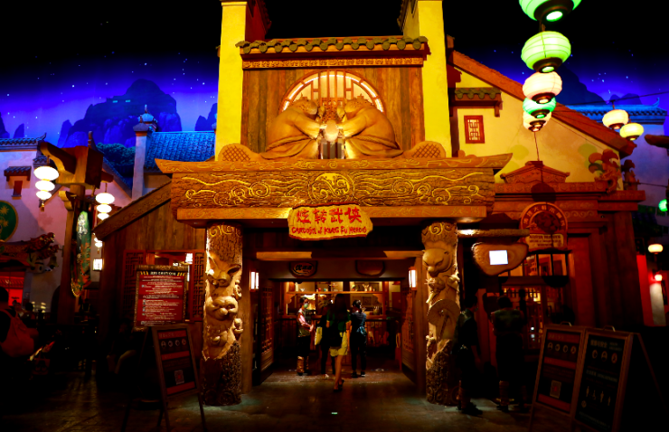 随后移步功夫熊猫盖世之地,步入世外桃源般古风世界。这里推荐十分适合亲子的旋转武侠项目,旋转木马的每一个骑乘造型都是动画传奇人物,跟随音乐律动开启旋转之旅。此外,功夫熊猫盖世之地整个园区都位于室内,不仅室温舒适,更有古风建筑和经典动画令人神游其中流连忘返。