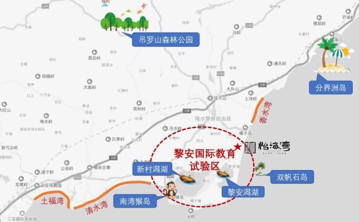 怡海湾地处陵水黎安国际教育试验区,8大名校入驻,区域投资1500亿打造亚洲最大的海洋主题公园——陵水欢乐海洋世界、黎安海风小镇、阿里巴巴智慧城市、全球最大免税店等一系列高端配套,是自贸港建设的桥头堡!
