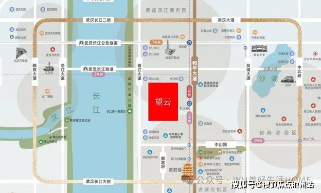 华润望雲所在的积玉桥板块是武昌传统的“富人区”,周边聚集了金都汉宫、蓝湾俊园等成熟社区,属于武昌内环核心区域,距离武昌江滩仅约900米,与长江江面直线距离约350米,部分高区房源可享受江景资源。