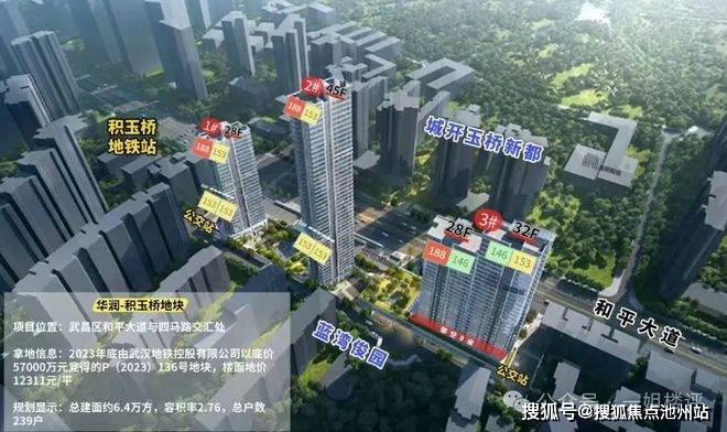项目地块由武汉地铁集团于2023年12月以5.7亿元底价竞得,楼面价约12311元/㎡,位于和平大道与四马路交汇处,属于正宗武昌内环稀缺地块。