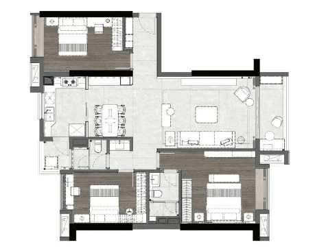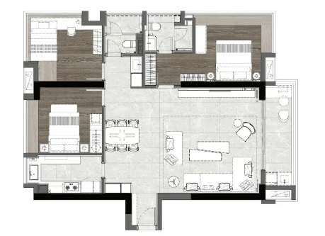 公园前·君熙府主推建面约139-146㎡3-4房,作为越秀区上一代产品,也能在使用率层面做出突破。以建面约139㎡楼王四房为例,户型外围三面都是赠送空间,三个阳台、L型飘窗、卫生间和书房0飘窗式拓展赠送,把赠送面积真正变成方正实用空间。