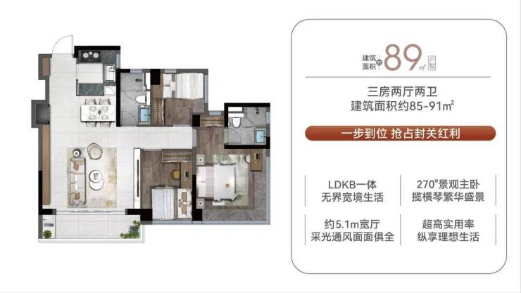目前89平横琴荟单价4.2/万起,最后保留房源2栋213㎡,3栋楼王223㎡