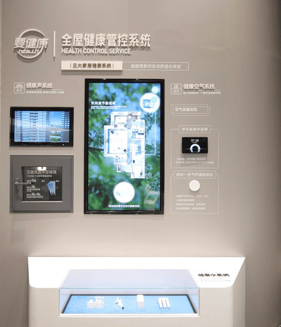 全屋健康管控系统:采用四大鲜氧技术,打造居家好风,享受健康呼吸;全流程三重净化,提供居家好水,从源头呵护饮水健康;高标定制超配,配有女王卫浴,关注女性栖居健康;全能收纳洗净,全能厨房健康烹饪,成为生活新享法。
