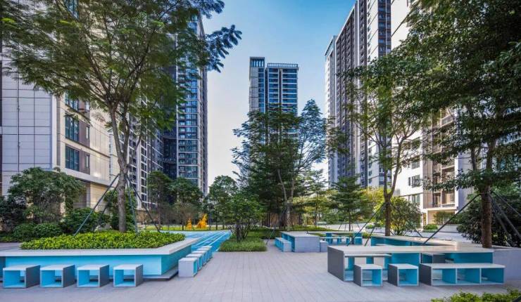 在园林设计上,深圳会展湾·东城力邀国际知名团队——美国SWA担纲设计重任,他们以千禧公园、深圳湾公园等国际知名景点为标杆,巧妙地将“水”元素融入设计理念之中,通过公共空间的精妙布局,匠心独运地打造出了约3.5万平方米的现代园林景观空间。这一设计不仅彰显了自然与人文的和谐共生,更成为了城市绿色生态的新典范。