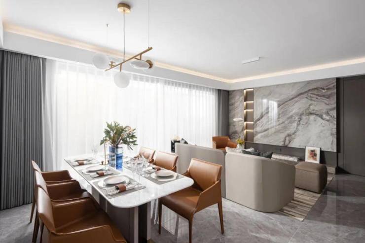 首层单元入户门厅统一采用了星耀灰石材地面和主背景墙面采用冰川鱼肚白岩板,局部架空层层高足足达到4米,住在临澜之城,仪式感与品质感也能同时兼得。