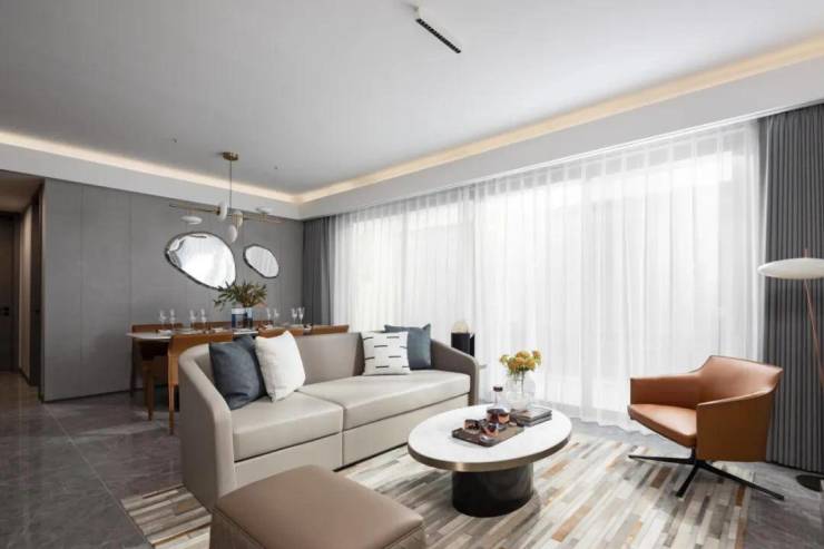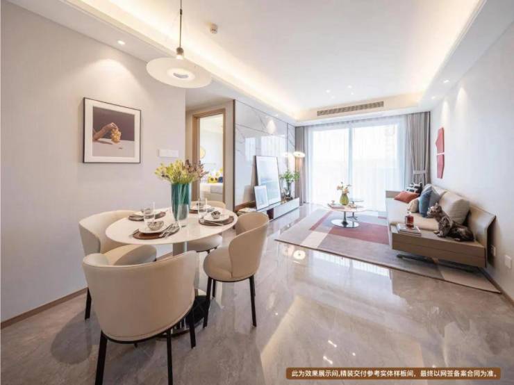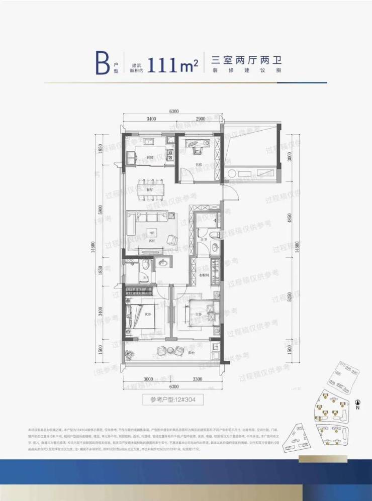 建面约111方户型:建面约111方三房两厅两卫边套户型,极其方正,无论格局还是尺度,都拿捏地恰到好处。豪华餐客厅,摆下收纳柜也不显局促。拥有一整面墙的采光,在家不开灯也很亮堂。户型南卧旁还拥有一个约6.3米的双联阳台,整体户型窗墙比也很大,可以说是难得一见的“阳光房”。