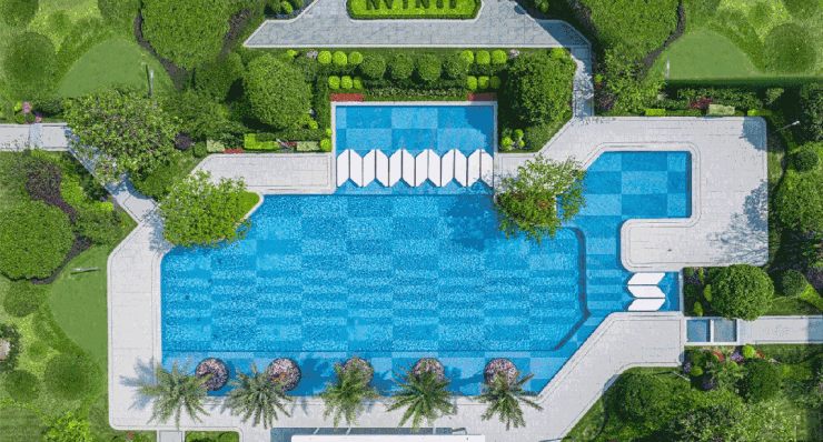 景观以 “未来” 为主题, “一轴五园” 之下勾勒出未来温馨而活力的生活画面。一条核心入园中轴,让归家更有仪式感;