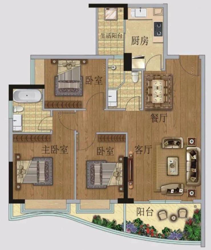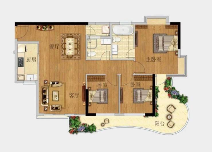 🅣🅞🅟02户型【95㎡3房2卫】东南向望江