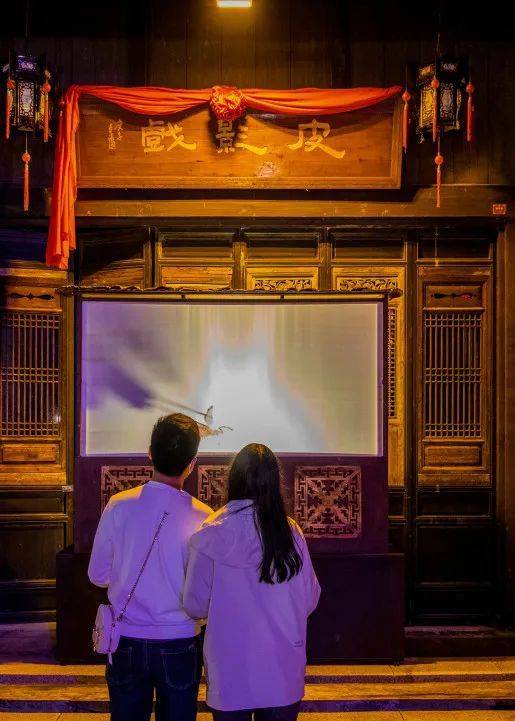 19:20,沉浸式夜游铜官故事正式上演,在万盏花灯下跟着演员们一起走街串巷,街头杂耍火力十足,吆喝声、叫卖声不绝于耳,看花鼓戏、皮影戏那些民间传统非遗……