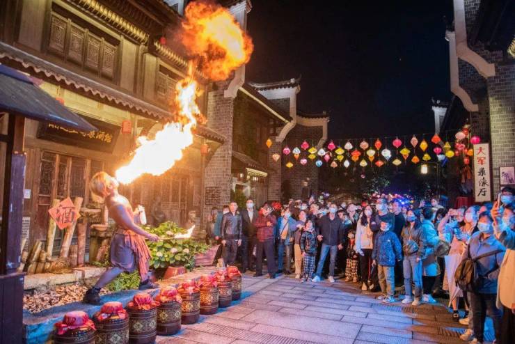 夜幕降临,铜官窑古镇的重头戏正式登场。
