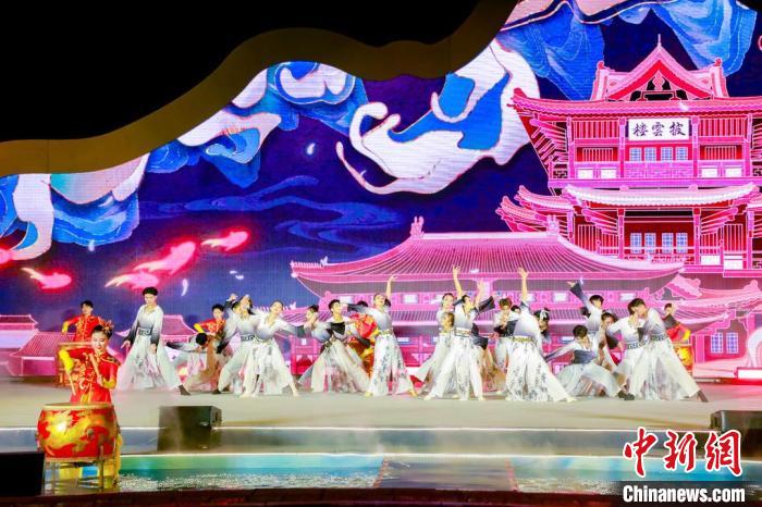 星湖荡舟、仙女翩跹、壁上诗廊……演员们颇具岭南风韵的歌舞表演与光影营造的画面融合,千年古城墙、广宁竹海等景点元素也一一呈现,充分展现了肇庆优美的生态、厚重的历史、多元的文化魅力,以及粤港澳大湾区繁荣创新发展的时代风采。