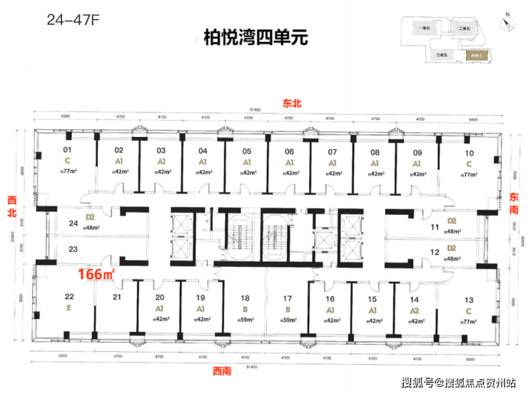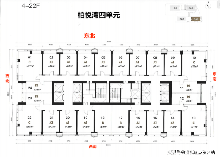 楼层高:1单元5-40层-2单4-43层元商办43层,3-4单元4-48层