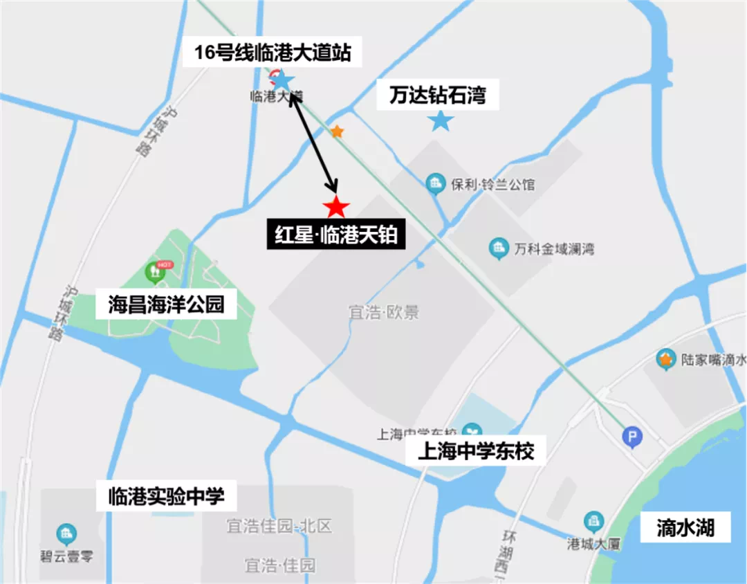 轨交地铁盘,距离16号线临港大道站直线距离约300米,还自带商业综合体爱琴海(预计2023年建成)。