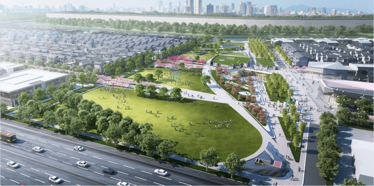 🔹主城都市休闲度假地标,打造赤石片矶、乐活之境等主题场景,全天候全龄活力共享,营造邻里社交场域。