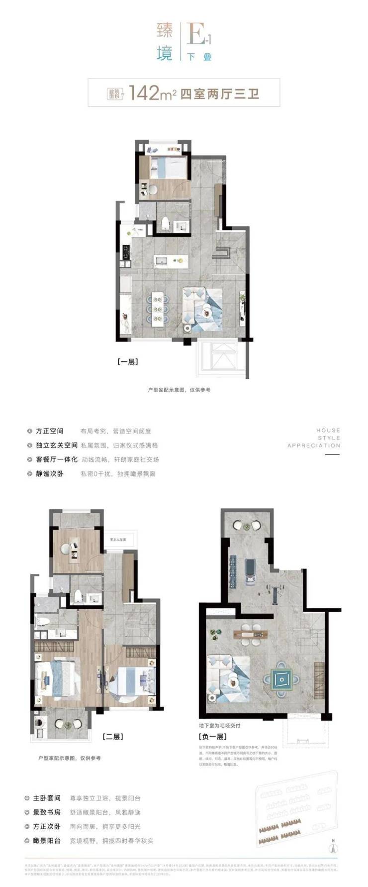 回归产品本身,金地嘉境规划有5栋高层及8栋叠加别墅,主推建面约90-101㎡小高层3房&约142㎡叠墅。