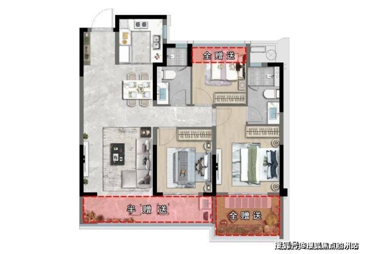 受益于全赠送的空中花园+设备平台改造,南洋未来社区户型实际使用率直接拉到92%,相当于在同面积段上白送约17.7㎡!
