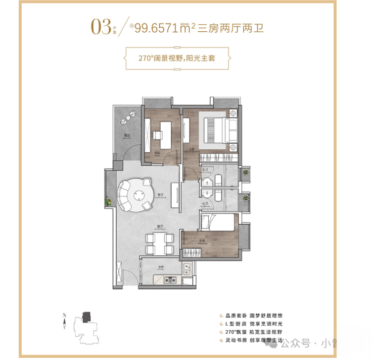99㎡的 3 室 2 厅总价 368 万元左右,比 90㎡的多了个储物间,餐客厅连在一起更显通透,主卧带独立衣柜区,收纳空间更充足,适合家里东西比较多的家庭。