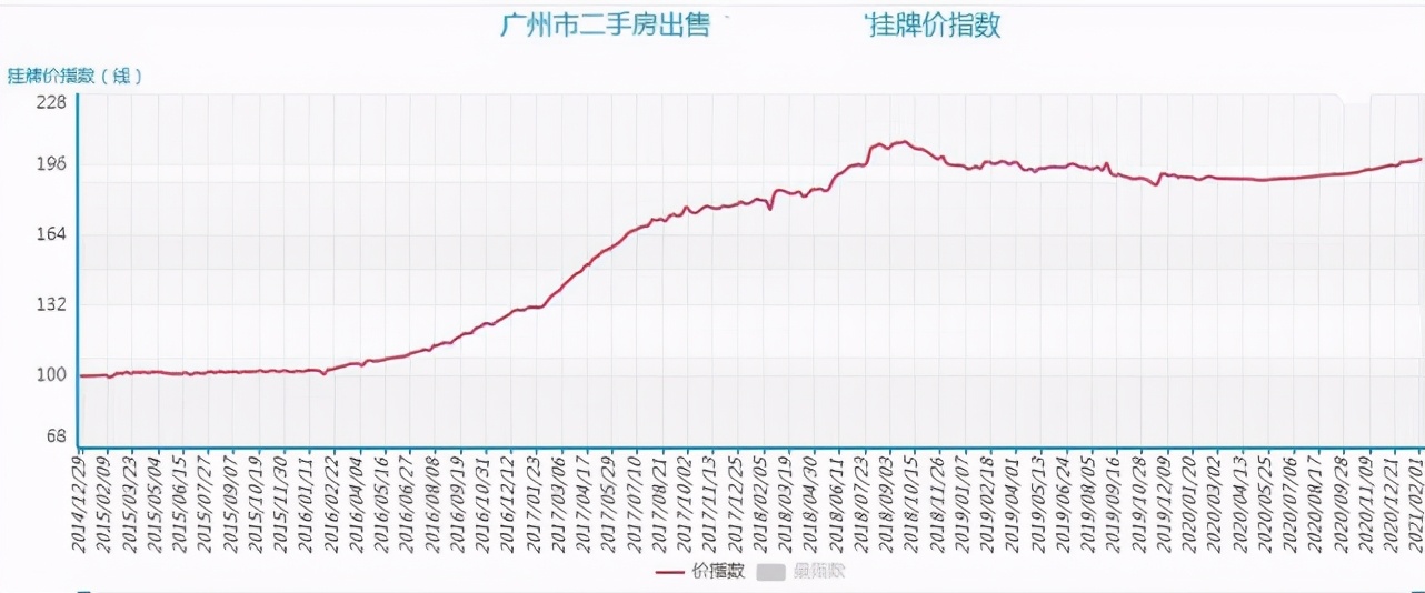 2018年8、9月见到高点,相比深沪京,广州的特点是楼市启动晚、见顶晚。见顶后明显下跌了半年左右;2019年阴跌;2020年上半年平稳,下半年小幅上涨;今年以来继续涨,但当前房价水平仍未超过2018年高点。在四个一线城市当中,广州市场弱于沪深,仅略强于北京。预计2021年房价继续上涨,将超过2018年高点;不过,按当前的调控态势,房价很难大涨。