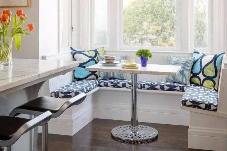 飘窗变身卡座,配合桌椅形成舒适的休闲区域,既美观也可增加一定的餐厅收纳。功能既完整,也不会影响空间动线的顺畅。