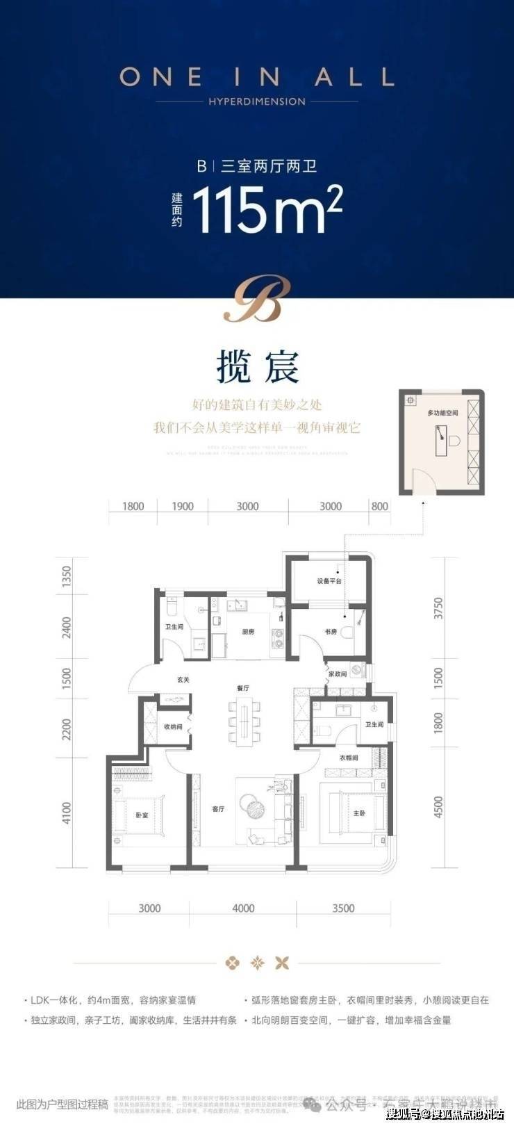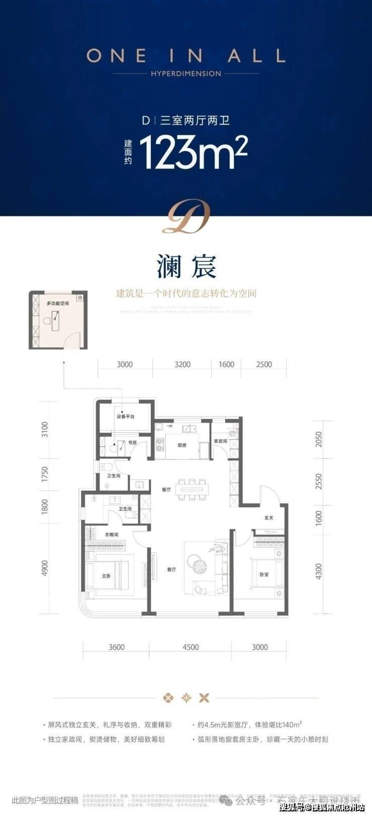 123平 195-210万,客厅面宽4.5米,比较舒服,这个面宽,似乎成了新入市120多平三室的标配了