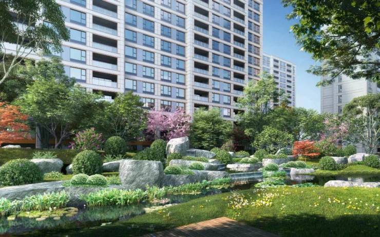在景观打造方面,项目风格是新海派风格,特点是延续海派文化的典雅格调。整个社区采用 “一环”“两轴”“三园”“六院” 的空间结构,展现现代海派的精致人居空间。
