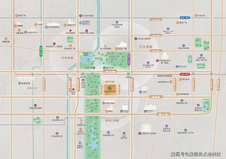 周边直线1km内有17个公交站,距离最近的石家庄大剧院站仅有133m,周边公共交通极为便捷。