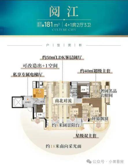 181㎡四房两厅三卫是改善旗舰户型,专梯入户设计,南向面宽开阔,主卧带独立书房和卫浴,部分房源能看到湖景和江景,空间舒适度较高,总价根据楼层不同有明显差异。