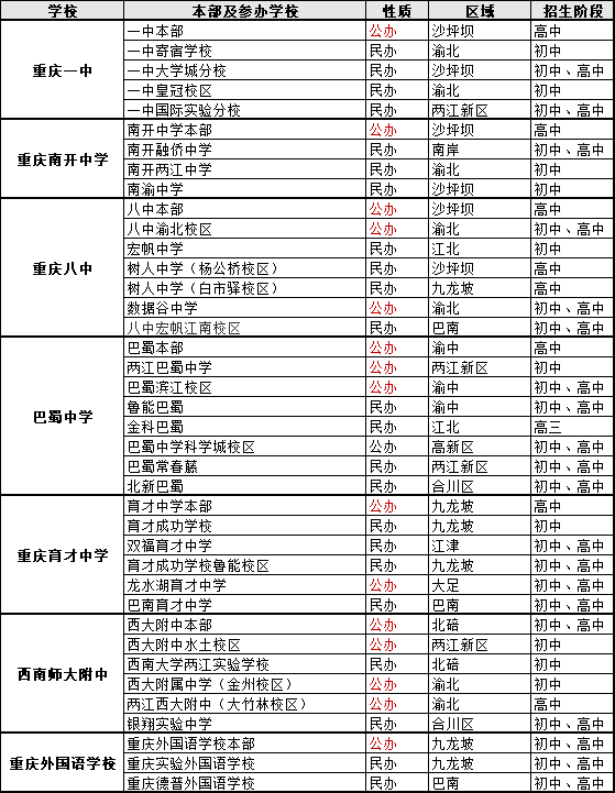 根据公开信息,事务君整理了七龙珠所涉及的初、高中学校,这些学校集聚了重庆最优质的教育资源。