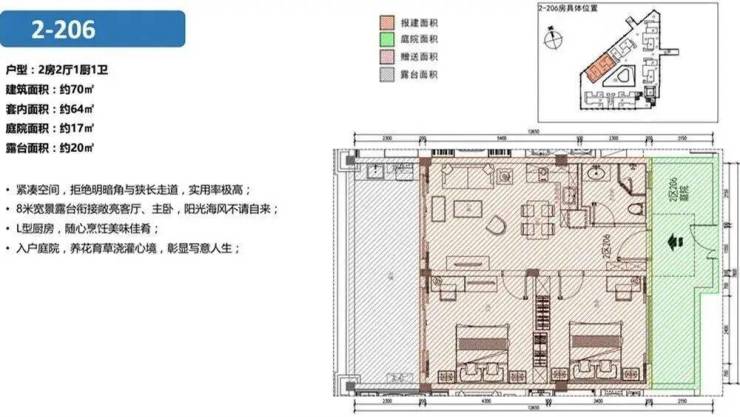 建面约70-75㎡两房