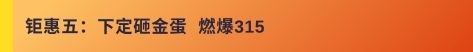 315活动期间,下定砸金蛋,豪华大礼等你领。下定金满3000元可砸金蛋一次,下定金满10000元可砸3次,以此类推,最多砸5次封顶;