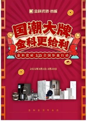 3月15日是国际消费者权益日,节日设立的目的在于扩大消费者权益保护。金科瓷砖作为行业的标杆品牌,践行3·15理念,心服务·有利量!