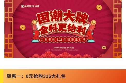 金科瓷砖全国门店315促销活动正在火热进行中!有幸福家居需求的您,不容错过哦,赶快来参与吧!