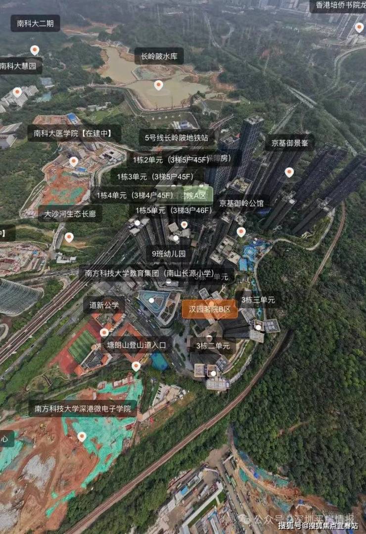 汉园茗院项目位于西丽科教城湾区战略核心,周边拥有南山头牌名校,提供一站式教育配套。项目临近留仙洞超级总部基地,该基地作为深圳六大总部基地之一,已吸引大疆、万科、航天工业等高新技术企业入驻,汇聚了60万高端就业人口、1500家企业以及约3000亿元产业集群,是上升科创的制高点。