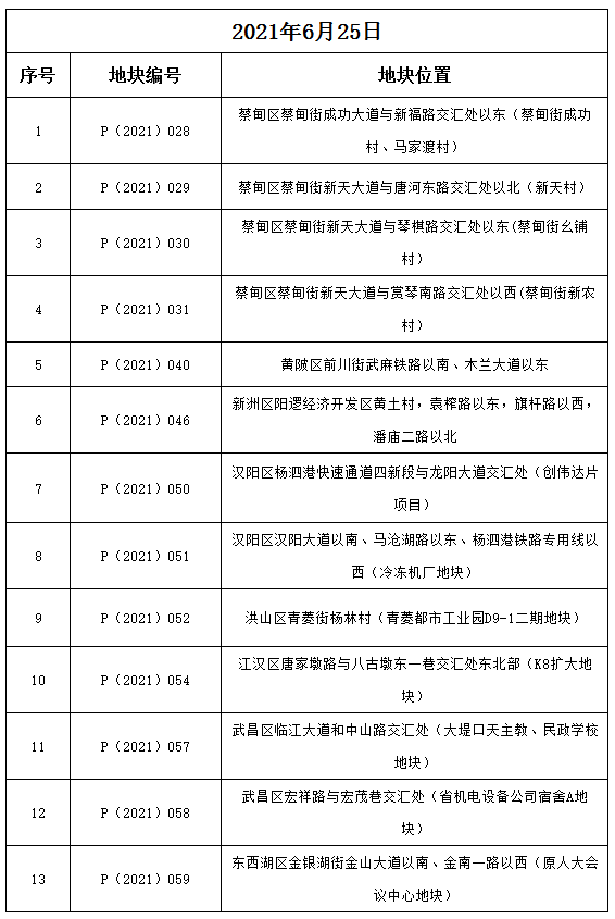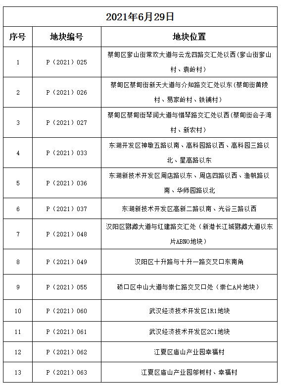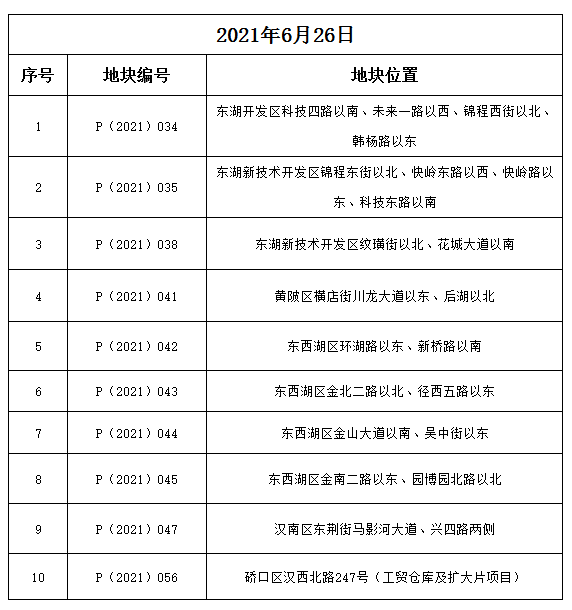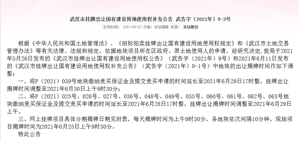 除此之外,根据《武汉市挂牌出让国有建设用地使用权补充公告武告字(2021年)9-3号》显示,还有12宗地块相比之前发生变化: