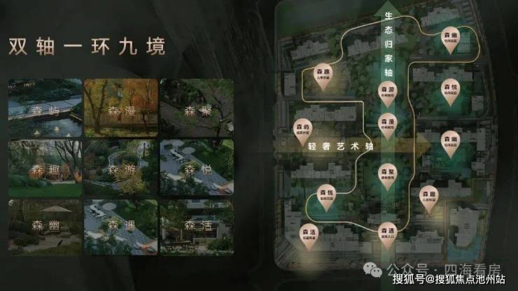 🌳先造景观再摆建筑,将土地慷慨归还自然。通过“双轴一环九境”、5大立体剧场的整体布局,营造可漫步、可探索、可沉浸的“森系生活园境”。