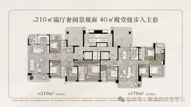 ◎户 型:建面约120-140-170-210㎡云幕平层