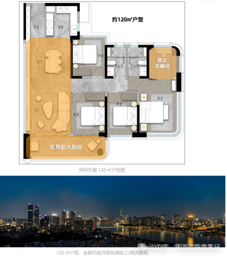 作为珠江新城首个同尺度下做到四房两卫的产品,120㎡户型拥有女王级独立衣帽间、约6.7米双面宽阳台、环幕瞰景窗等珠城稀缺的产品亮点,随着报建规则逐日缩紧,这样的户型以后很难再次出现。