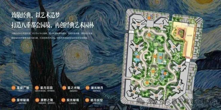 秉承“誉”系品质,打造“星空花园”主题大园林,约3万㎡围合式园林,约等于4.2个标准足球场大小,绕小区园林跑步一圈都有约1公里,源于梵高《星月夜》为灵感的“八重都会园境”,让您和公园只有一部电梯的距离,配备全龄泳池,两大儿童主题空间,构建全龄景观配套。