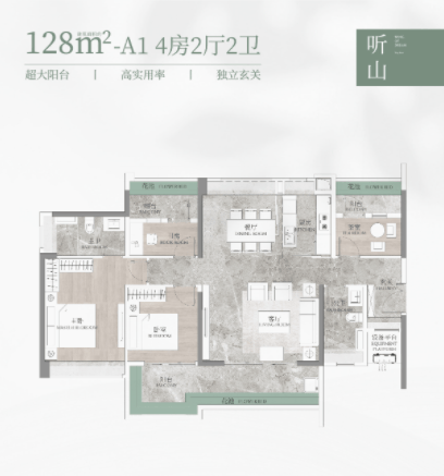 118㎡和128㎡四房布局方正,LDKG一体化设计让公共空间更通透,双阳台设计实现南北对流,参考价格分别为680万-750万、740万-820万,适配二胎家庭;
