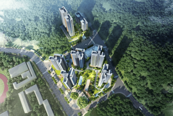 生态环境上,项目被大灵山、长岗山等山体环绕,周边有岐山公园、天河儿童公园等五大公园,人均公共绿地面积13.4平方米,居住舒适度较高。