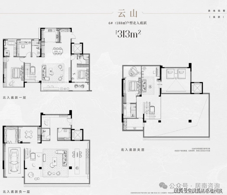 底跃—【私享院墅】户型建面约:293㎡、313㎡、393㎡